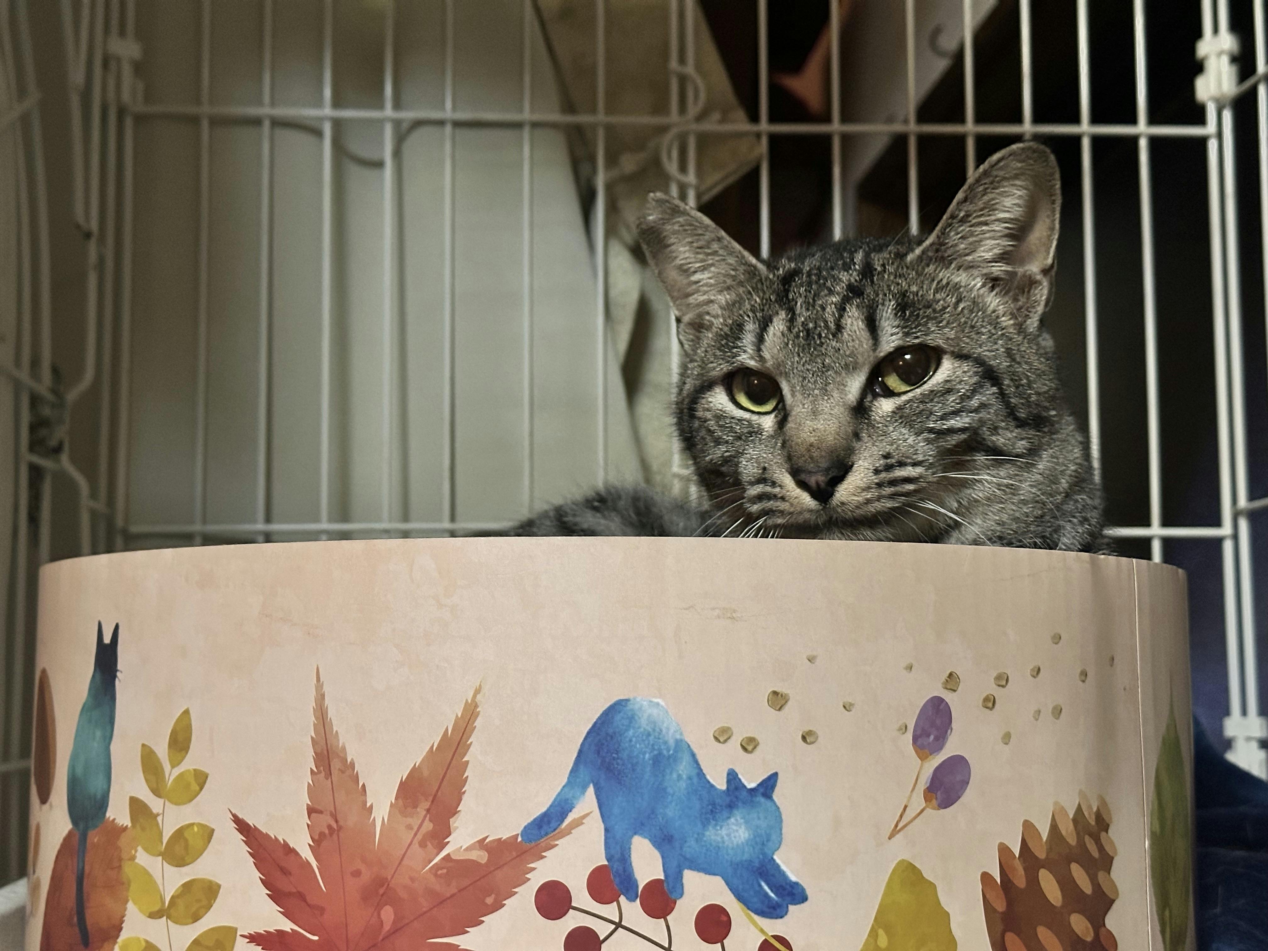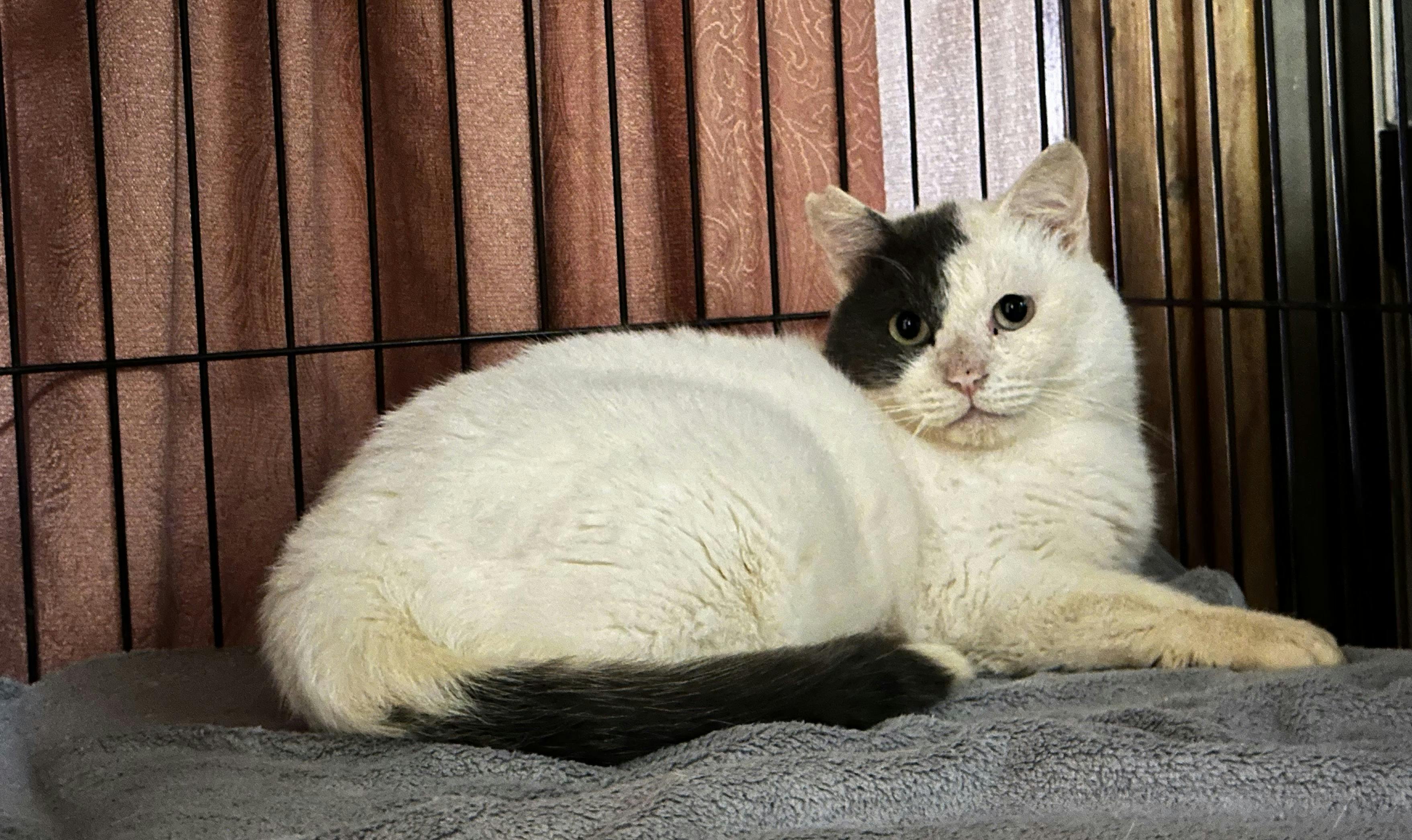 キジトラを見て、ハンサムだと褒めてくださり、気に入ってくださった様子でした。しかし、キジトラは驚いてケージ内を跳ね回り、慌てた様子を見せていました。私たちには慣れてきたものの、新しい人にはまだまだ敏感なようです。…