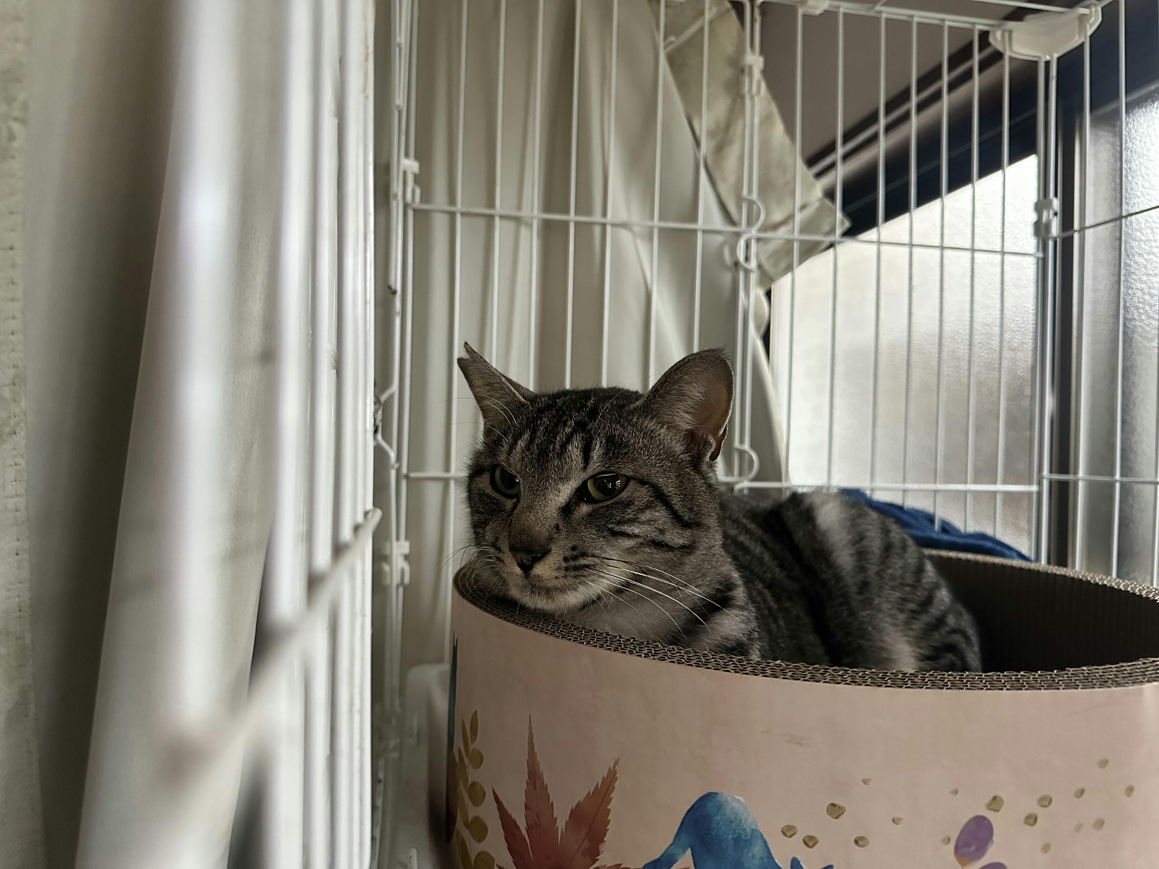 先日は、ケージの隙間からそっと手を出して、ちょいちょい…と私に触れようとする仕草がありました。