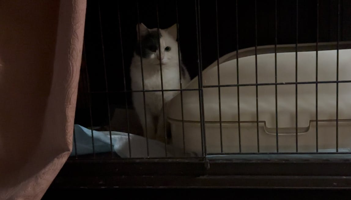 駆虫薬、無事投与出来ました。昨日は、まさに根比べの一日でした。前日から駆虫薬入りのごはんを拒否し、ほとんど食べずに耐えていた野良猫ちゃん。普段はたくさん食べて、たくさんトイレをする子ですが、昨日は出ませんでした。駆虫薬を無事に投与するためには、どうしても食べてもらわなければなりません。(そうでなければ、病院に連れて行くというお互いにとって危険なミッションに移行することになります)そこで、駆虫薬入りごはんを一旦半分に分けて新鮮なウェットを追加し、カリカリをトッピング。苦味をさらに薄める工夫をしました。根気よく置いて待つと、ついに空腹に耐えきれず少しずつ食べてくれました。ここで諦めて薬入りごはんをやめ、普通のごはんにしていたら、次は二度と食べてくれなかったと思います。残り半分も同様に与え、できるだけ劣化を避けるため冷蔵庫に保管しながらの対応でした。こうして、病院に連れて行く必要もなくなり、無事に駆虫薬を投与できてほっとしました。ごはんを食べたことで元気になり、ケージの前でグレー白ちゃんたちに熱心に話しかけていました。時間はもう深夜になっていました。グレー白ちゃんだけ、呼びかけにお返事していました。*ドロンタール2.5錠に対して、初めはフィリックスのウェットパウチ2袋混ぜてもだめでした。そこでそのごはんを半分に分けて、黒缶を1/4混ぜると食いつきがよかったです。先生によると、半分の猫ちゃんは嫌がってもう食べない。まずいと気付くともう食べられず、注射になるとおっしゃっていたので、少しでも参考になればと思います。