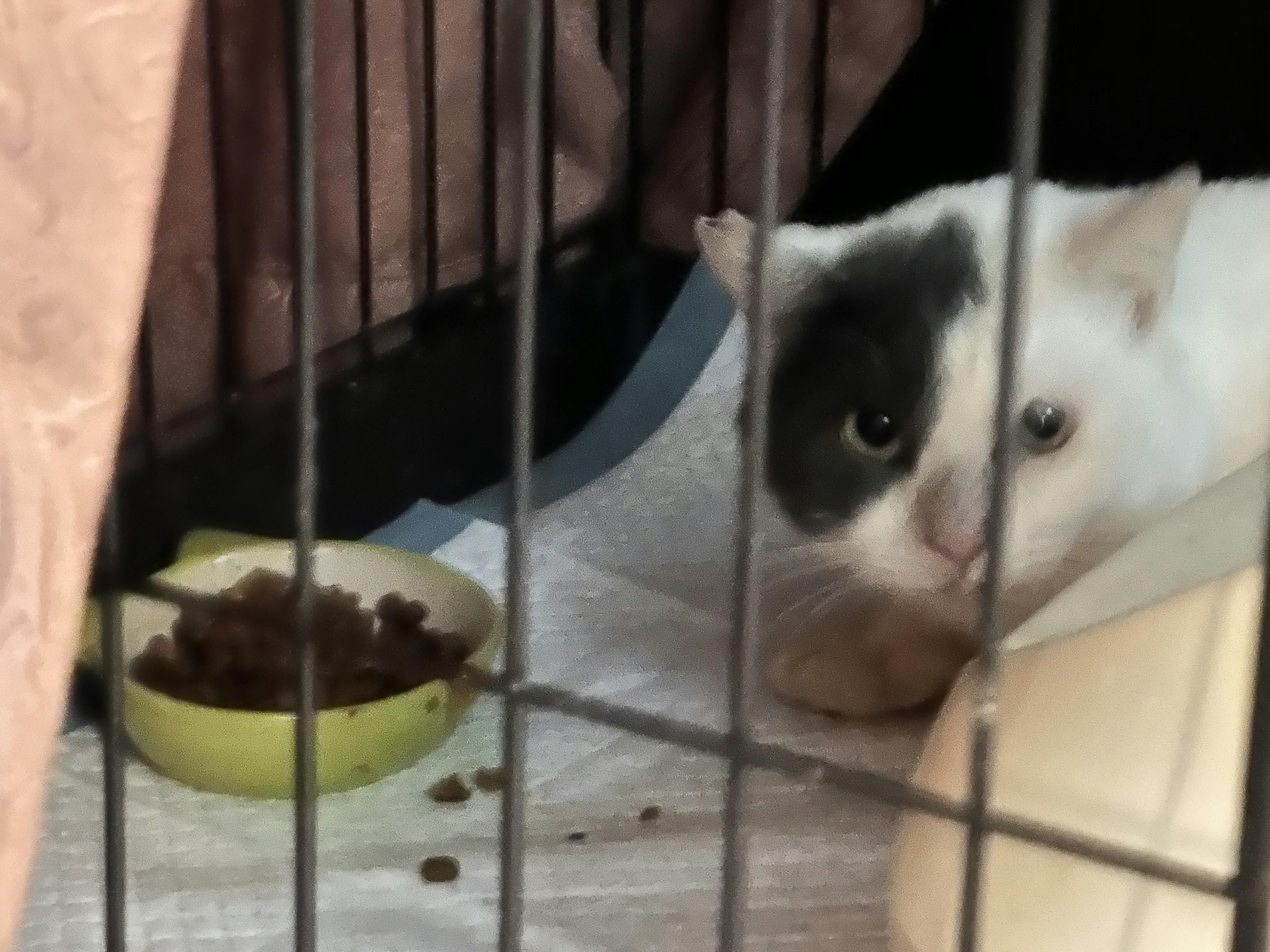 ごはんを食べている最中に、ついわたしが覗いてしまった時の野良猫ちゃんの様子。驚いてさっと身を隠そうとしましたが、40cmほどの距離から食べている様子をそっと見守ることができました。現在、里親様募集は開始していますが、人馴れも少しずつ進めていく必要があります。この間、そっとちゅーるを差し出すと猫パンチが飛んできました。まだまだ根気が必要です。