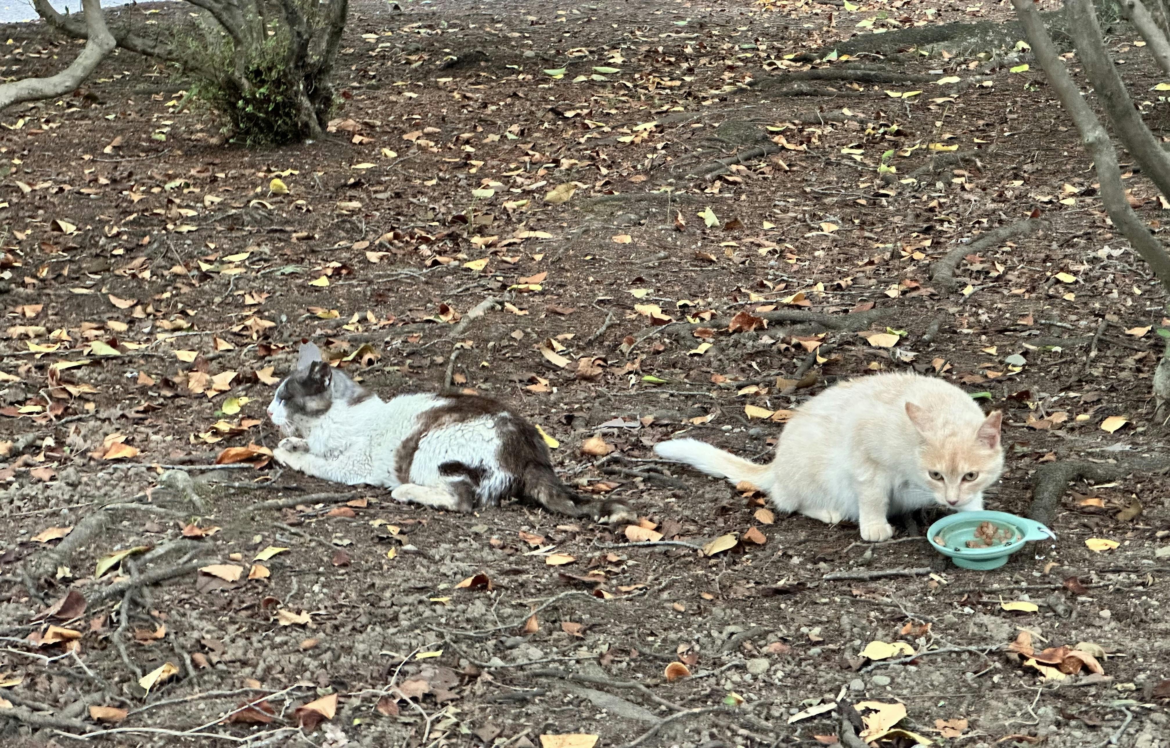 お電話で、餌やりさんと3匹の猫たち(グレー白ちゃん、チャトラ、茶色の子)の様子についてご報告・やり取りをしました。昨年、寧々を含めて2匹、そして現在は3匹を我が家で保護していますが、公園内には残るところあと4匹の猫がいます。公園外にも猫がいるそうですが、来たり来なかったりするようで、わたし自身はまだ会えたことがありません。いま公園にいる猫たちは健康状態も悪くなく、ふっくらとしています。どの子も警戒心が強く、逞しく生きてきた子たちです。その中には、公園で生まれ育った茶色の子のお母さん猫と兄弟猫も含まれています。親離れ後、茶色の子はグレー白ちゃんと花壇側をごはん場所にしていました。いつも一緒に現れていたふたりは、我が家でも仲が良く──というより、茶色の子がグレー白ちゃんのことを好きで、そばに行こうとします。そんなグレー白ちゃんはエイズ陽性が判明したため、今後どのような形をとるのが良いか、模索しているところです。…公園にいる子たちの中で、緊急保護が必要な子は昨年からすべて我が家に迎えてきました。そのため、現在残っている猫たちは、引き続き見守りを続ける予定としています。それでも、定期的な健康チェックは欠かせないと思っています。長年、公園で餌やりをしてくださっている方に、猫たちの体調に変化があった際には、どうか病院へ連れて行っていただけるようお願いしました。ただ、現実的にはそれは難しいとのことでした。餌やりさんには感謝の気持ちをお伝えしつつ、猫たちの体調に不安がある時には、随時ご相談いただけるようお願いしました。私は常に公園に出向ける状況にはなく、毎日様子を見守ることもできません。すべての猫をひとりで抱えきれないもどかしさや悲しさもあります。だからこそ、その地で支えてくださる餌やりさんの存在に感謝しながら、お願いをするしかありません。公園は人の出入りが多い大きな場所ですが、これまで体調不良の猫たちは見過ごされてきました。「きっと誰かが…」という期待は、きっと、現実には難しいのです。行政や地域が協力し、猫たちの健康を管理・見守る体制が整っていないことを、改めて感じます。掛け合っても、どこにも受け止めてもらえない―そんなもどかしい現状があります。それでも、だからこそわたしはできる範囲で、目の前の命に寄り添うこと、を続けていきたいと思います。いつも見守り、応援してくださる皆さまに、心から感謝申し上げます。❁写真は公園時代のグレー白ちゃん、茶色の子