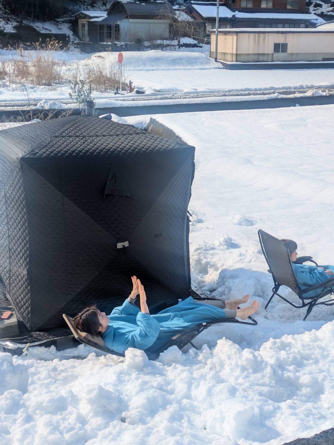 憩いの場の準備 ストーブやこたつ、温かい食事の準備など、冬でも快適に過ごせる「ととのいスペース」の設営を進めています。