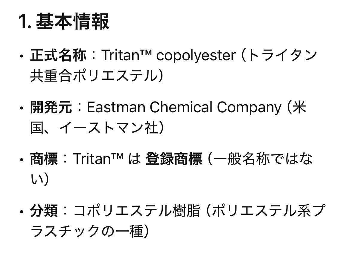 🔴「トライタン共重合ポリエステル樹脂・BPA フリー 」