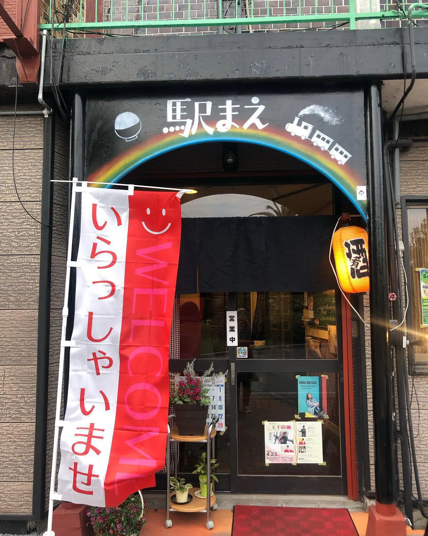 駅まえ食堂の入口です♪木曜定休。第1金曜第3金曜日は「いないいないバー」19:30~地域の人と楽しくワイワイやっています
