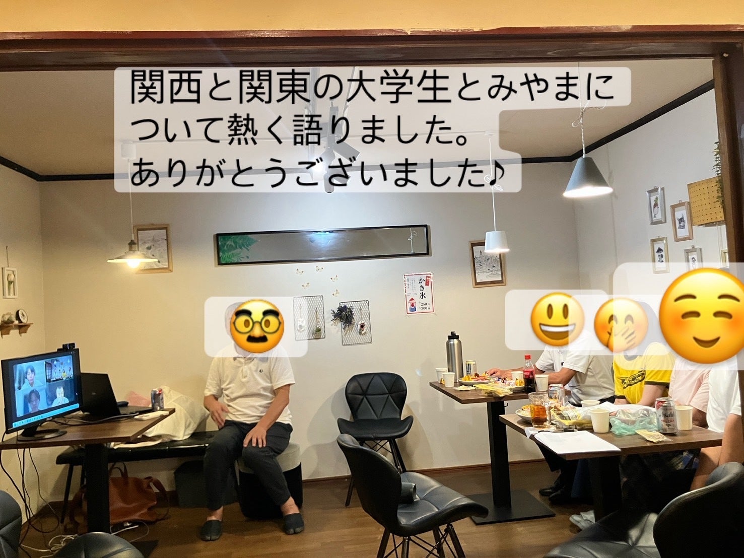 ←大学生と地域課題の一つ『地域愛の育成』についてzoomを使い語り合いました。