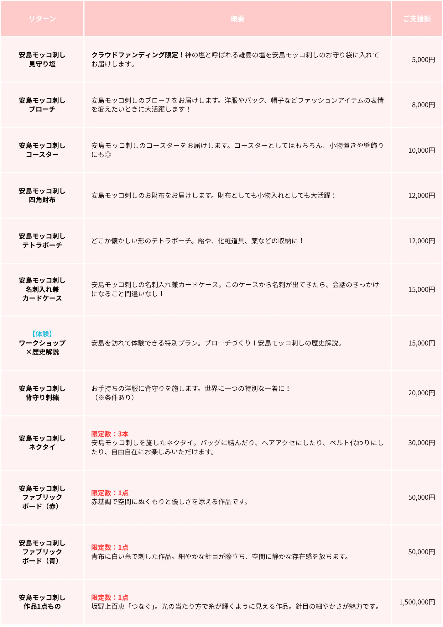 ※それぞれの詳細はリターン欄をご覧ください