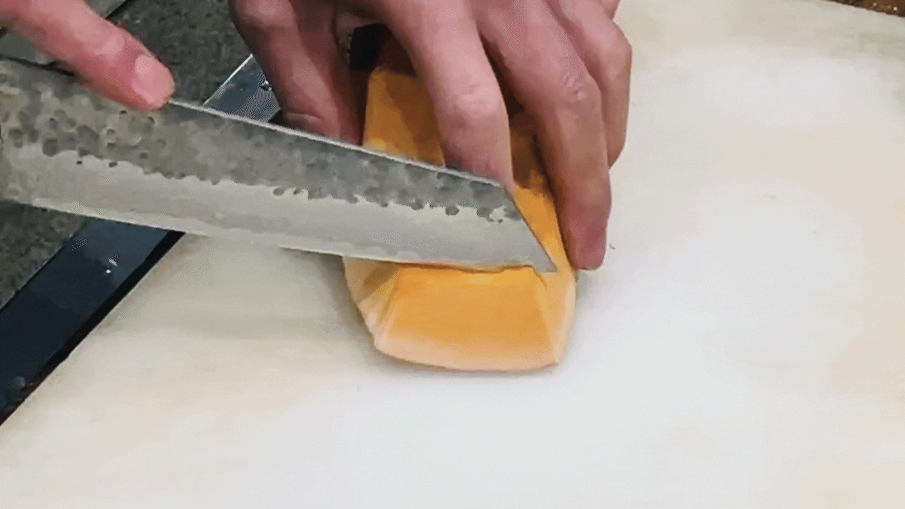 切る動作が驚くほど軽やか。断面はなめらかで、旨みと香りを逃さない。