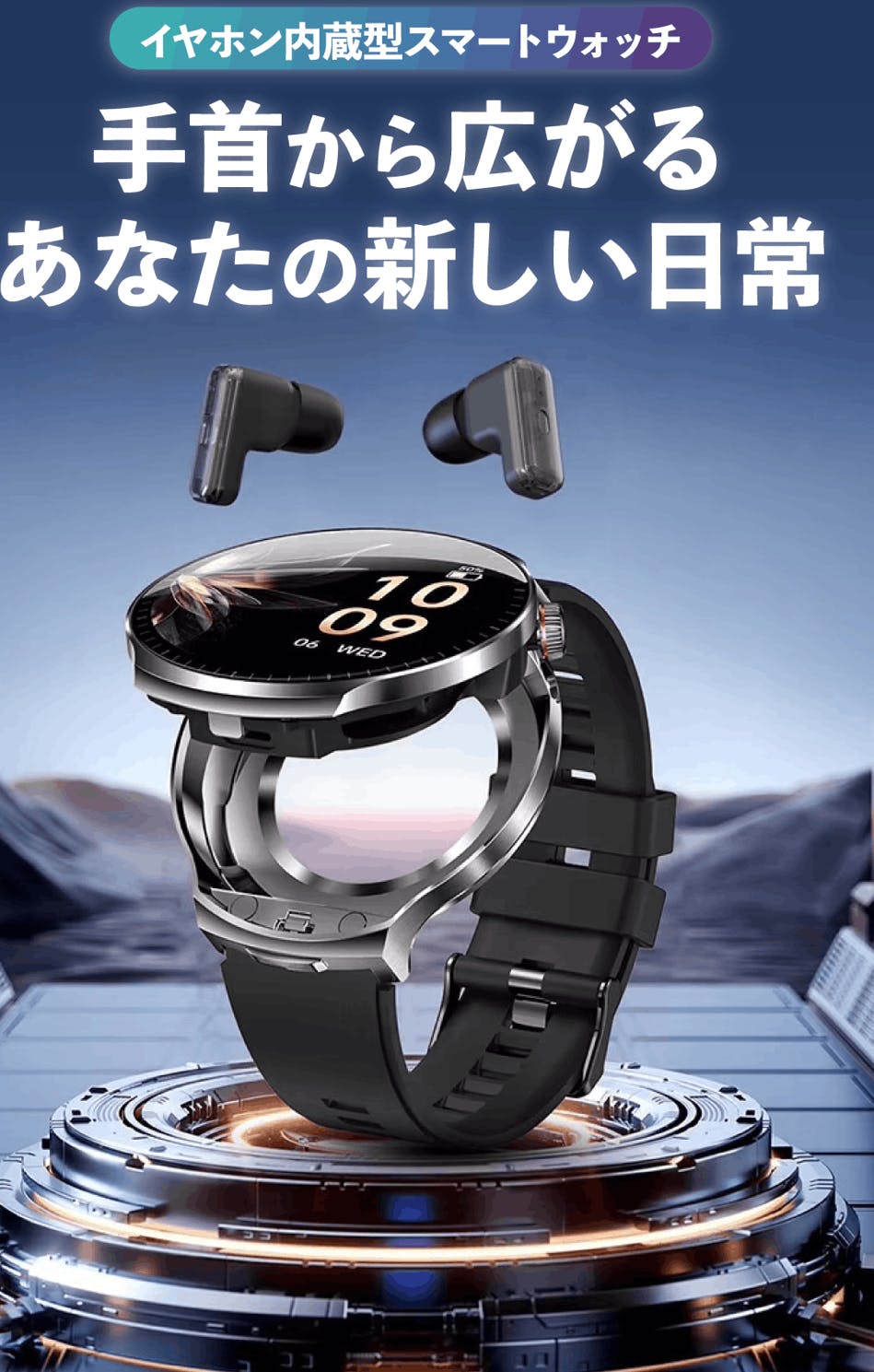 その心配はもうありません。イヤホンはいつもあなたの手首に。スマートウォッチの中に収納され、取り出すたびにフル充電。探す手間も、電池切れの不安もなく、必要な時にすぐ使えます。