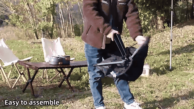 A. 組み立て不要です。バッグから取り出して約5秒で展開できる「一体型チェア」です。どなたでもすぐに簡単に使うことができます。