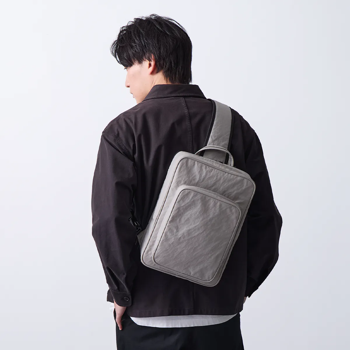 TOUGH LITE SLING BAGは、必要な荷物を無理なく収納し、オフィスカジュアルにも自然に馴染むミニマルなデザインで毎日の通勤にも活躍します。
