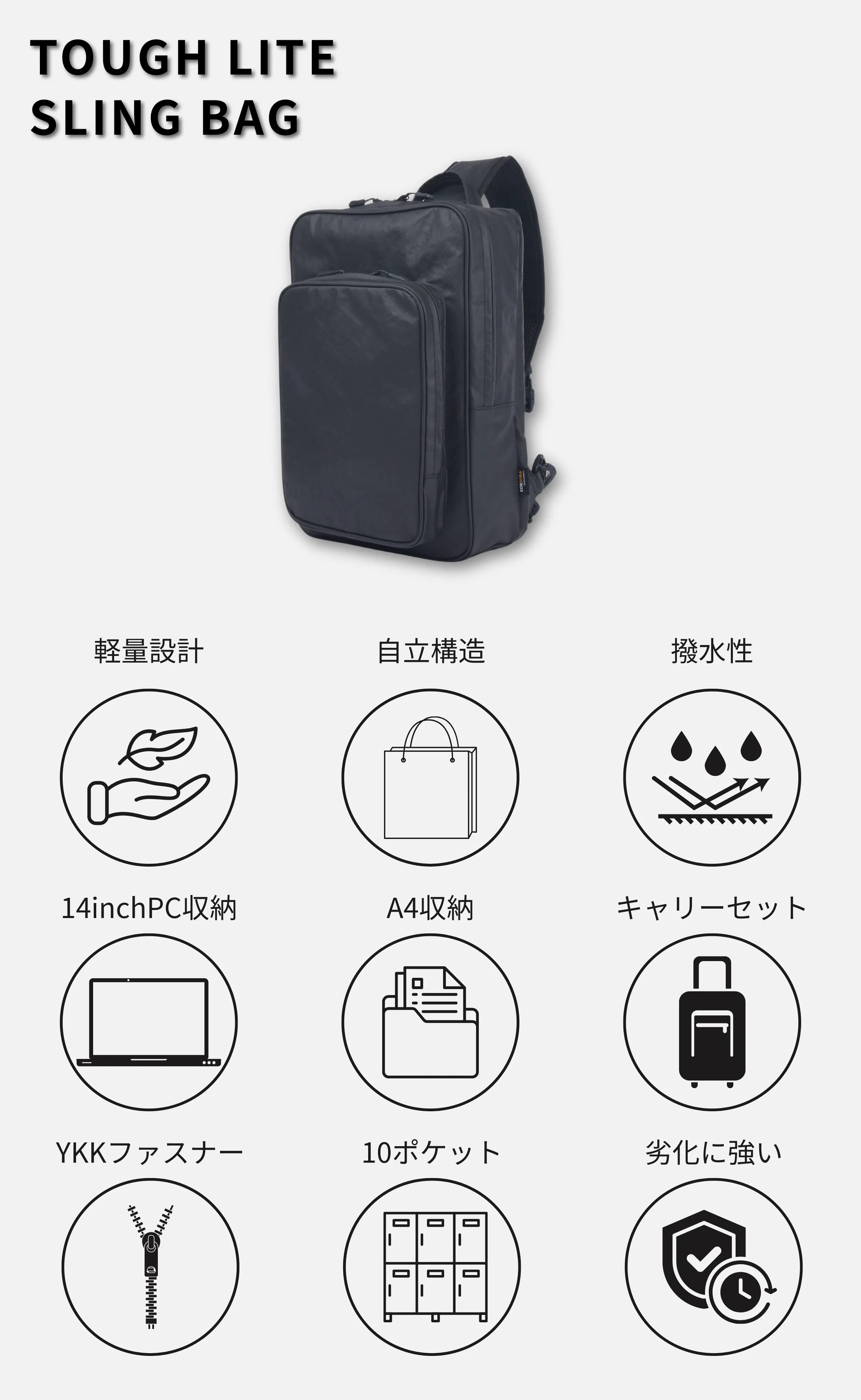 TOUGH LITE SLING BAGが、きっとあなたの毎日を支える相棒になってくれると信じています。