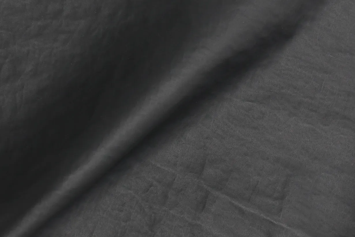 細番手のCORDURA®︎ナイロンと高耐久樹脂の組み合わせにより生まれるコシと、生地に施された自然なシワ加工から生まれる独自の風合いがある生地は、触ってみると「さらっとしたシャリ感」と「ナイロンのハリ感」があり、ずっと触っていたいと思える手触りです。