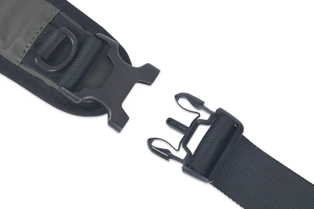 バッグに使うパーツの中で、特に負荷がかかる部分には、ミリタリー規格も多く手がけるDURAFLEX社の中から、軽さと強度が両立し、さらにデザインも優れている物をこだわって選んでいます。