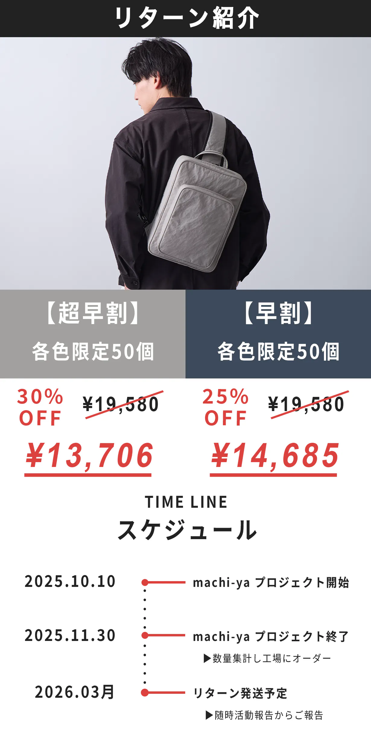 2025/11/27 19:00machi-yaとCAMPFIREユーザーの皆さまお世話になっております。TRIDEAL運営の千坂です。TOUGH LITE SLING BAGのmachi-yaでのプロジェクトも、とうとうラスト3日になりました。こちらのプロジェクトは、11/30 23:59に終了になります。全てのカラーで、一番お得にご購入できる【超早割】のリターンもまだ残っております。先に実施したMakuakeでのプロジェクトでは、220万円を超えるご支援を集めた人気のプロダクトをぜひお得な価格でご購入ください。それでは最後までプロジェクトの応援とご支援よろしくお願いいたします。TRIDEAL 千坂 もっと見る