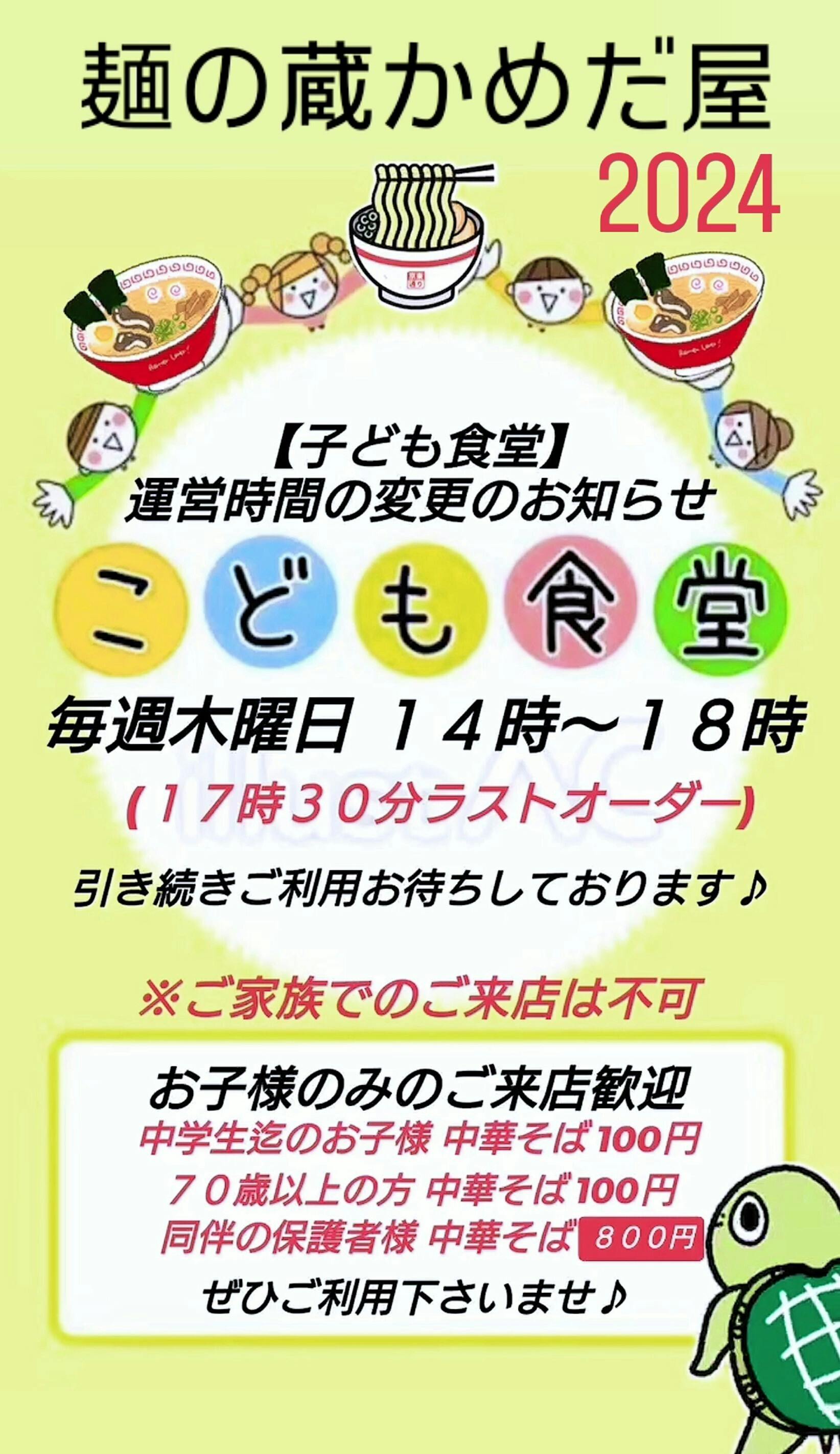 そんな当時を思い浮かべながら、今は私が子供達にお腹いっぱい食べて笑顔になってほしいと、麺の蔵かめだ屋のオープンと同時に子ども食堂を始めました。子ども食堂も噂が拡がり軌道に乗り始めてきた矢先、度重なる材料費高騰。