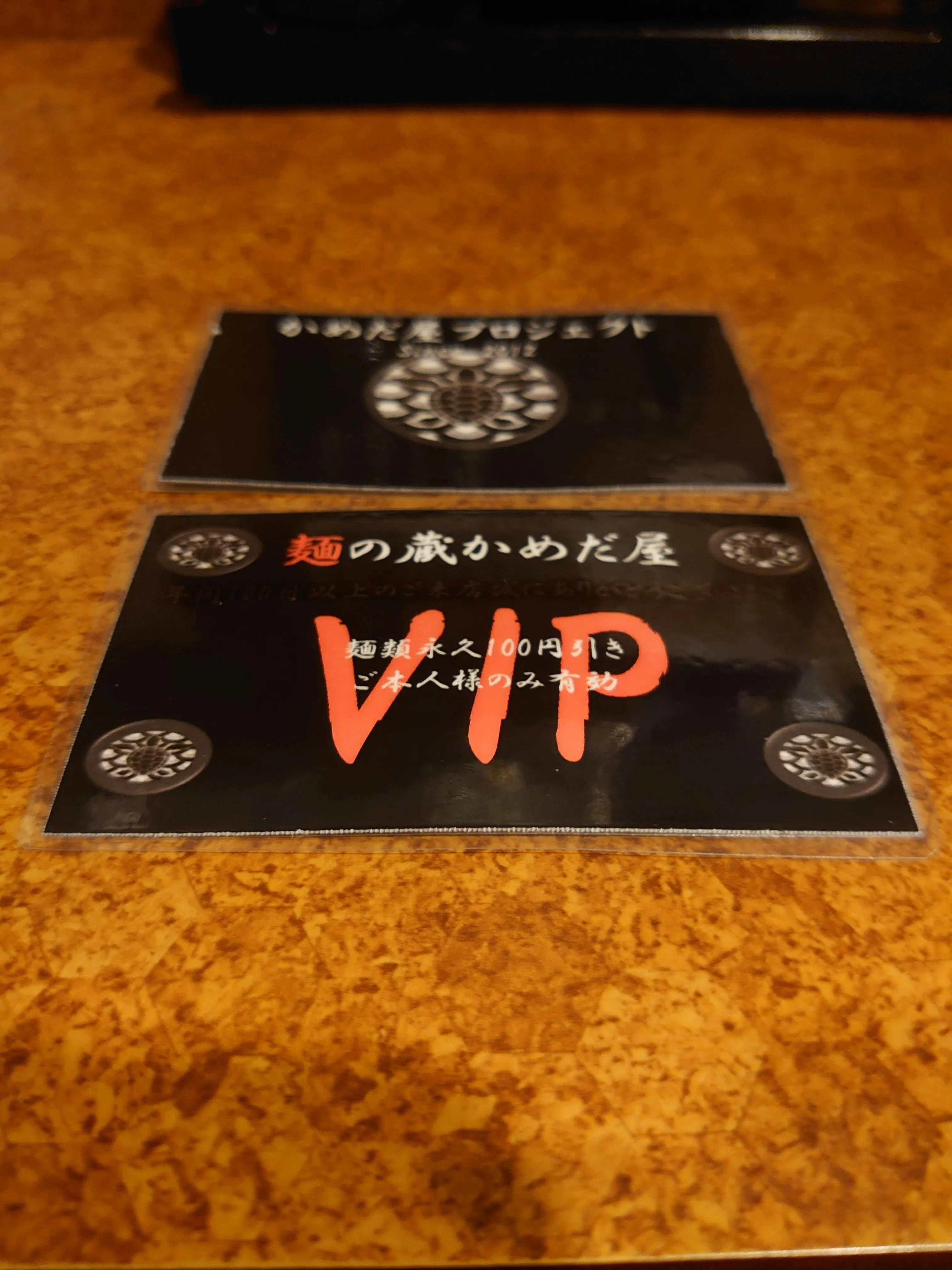 (かめだ屋VIPカード(毎回100円引き)をお渡しいたします。又、お好きなラーメン5杯ご提供させていただきます)