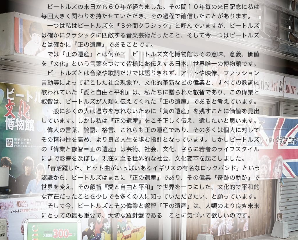 広く皆さま方にビートルズ文化博物館継続のご支援」をいただきたく、