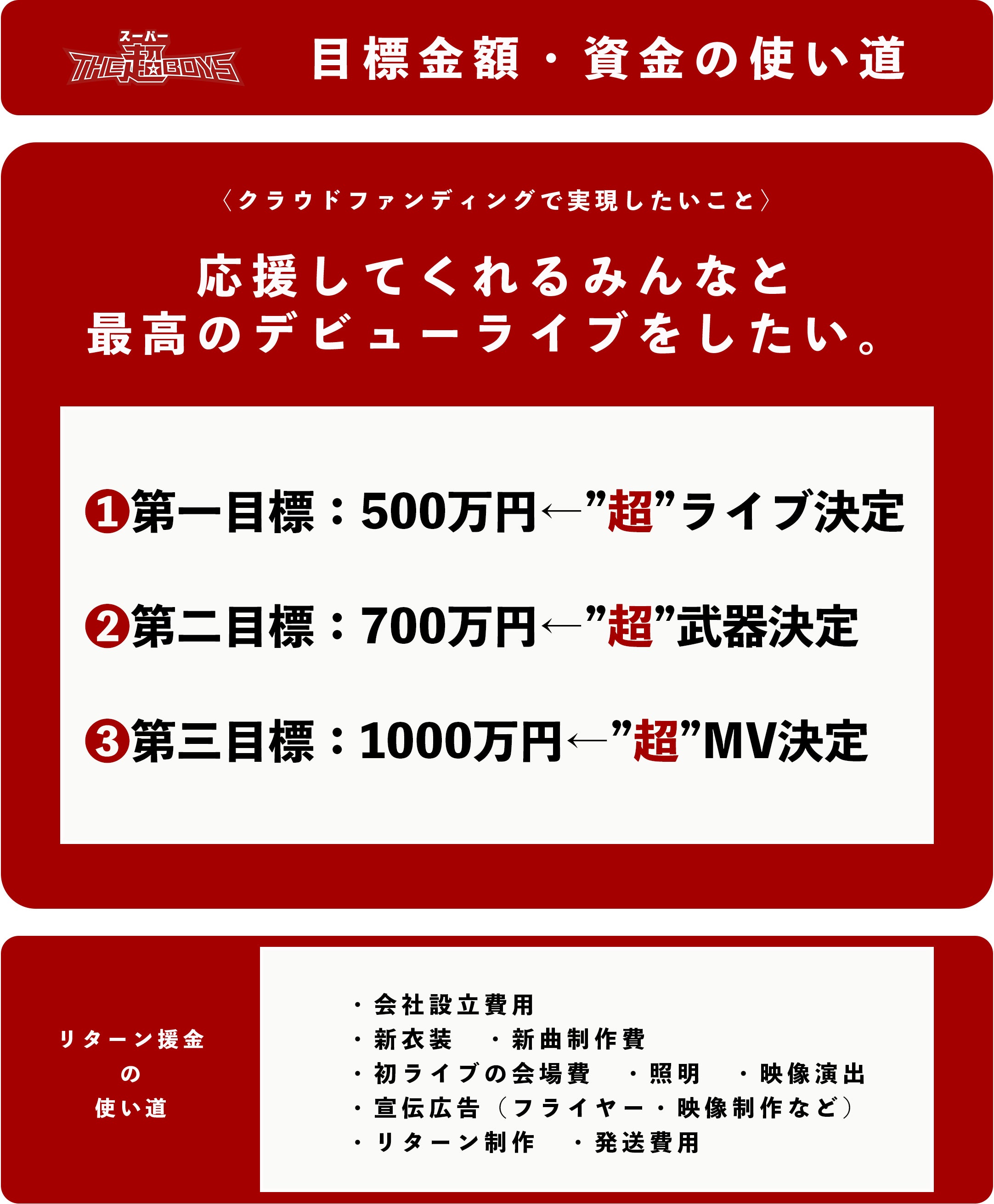 いただいたお金は、デビューライブに向けて「楽曲・衣装」等にあてさせていただきます。