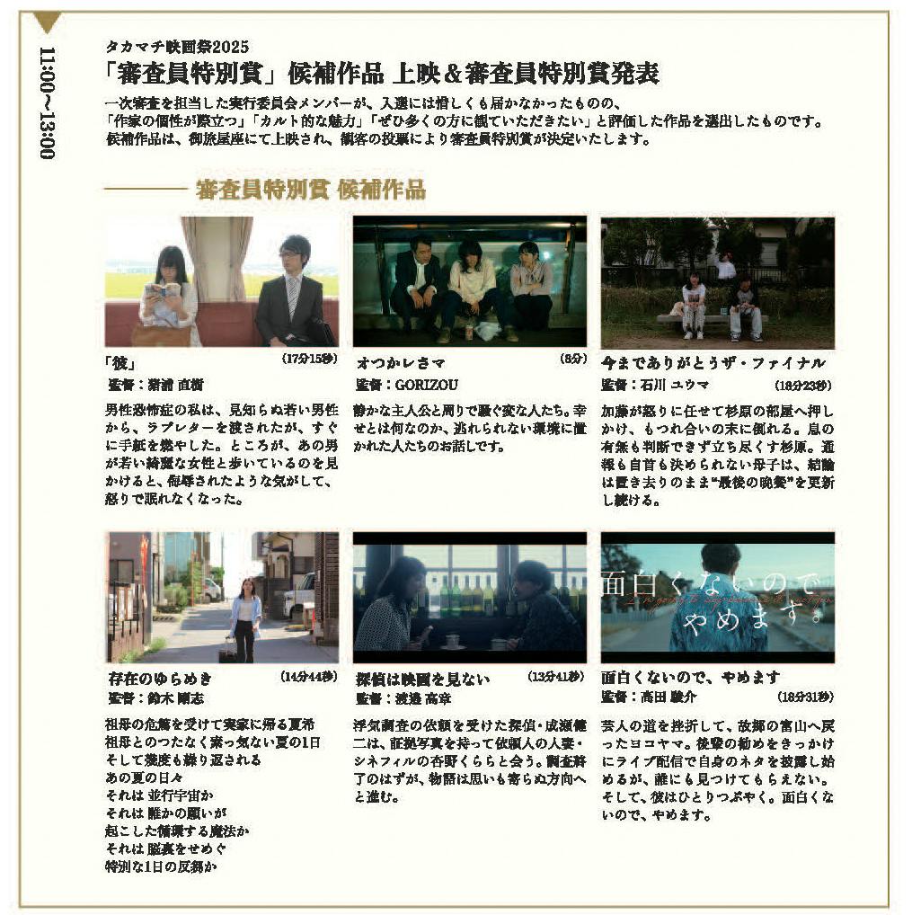 〇タカマチ映画祭2025 審査員特別賞候補 作品上映 ※入場無料(@御旅屋座)