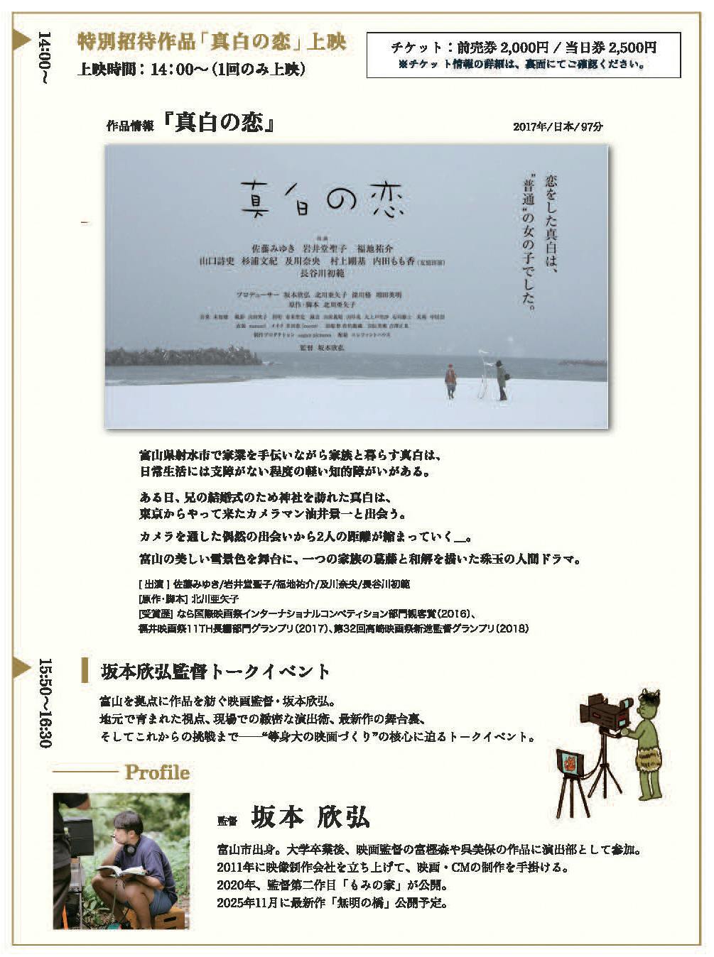 上映後には、「真白の恋」坂本欣弘監督のトークイベントも予定しています。