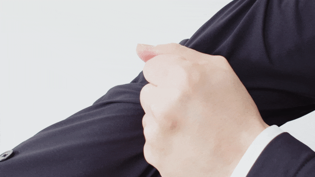 ストレッチが効いているのでスーツを着たまま、異次元の動きも。走ったり、飛んだり、手を伸ばしたりストレスフリーで可能です。