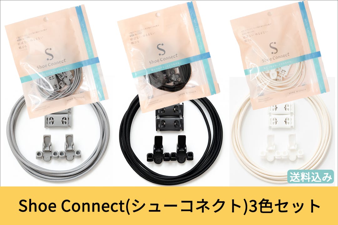 シューコネクト3色セット(白・黒・グレー各1セットずつ)をお届けします。
