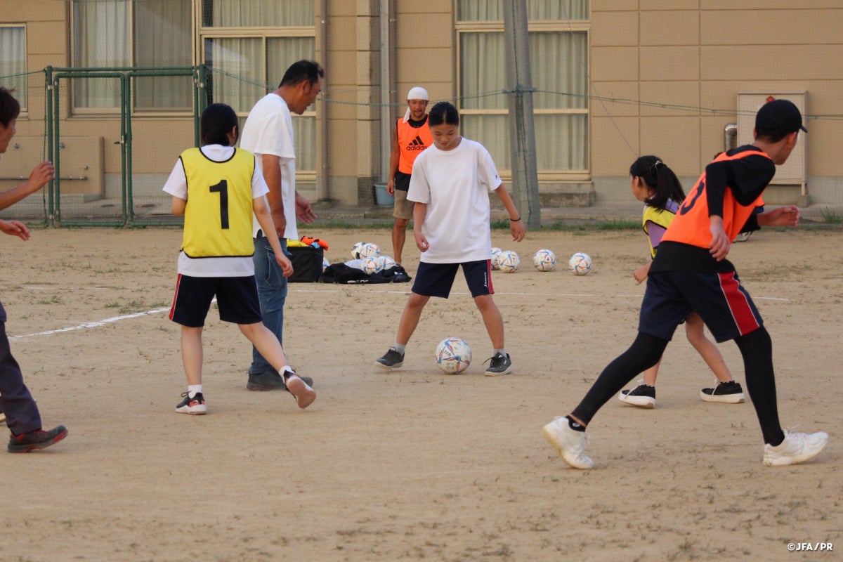 JFAでは、被災地の自治体やサッカーファミリーとも連携し、学校や保育園等の子どもたちが過ごす場にくまなく出向き、スペースが十分に取れない環境であっても身体を動かす機会を作り、子どもたちの心のケアにつながる取り組みを進め、現在でも各地域の状況に合わせて続けています。
