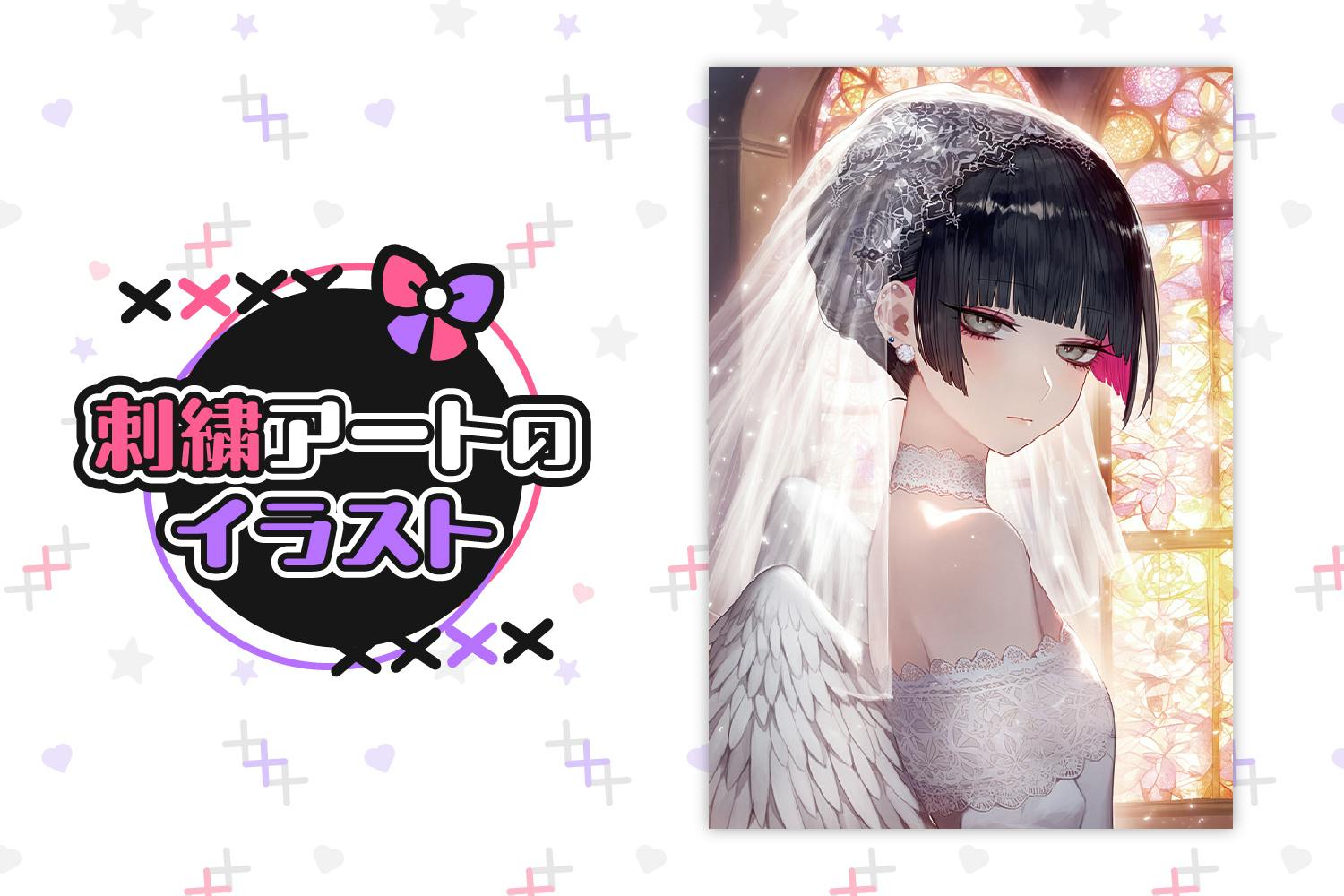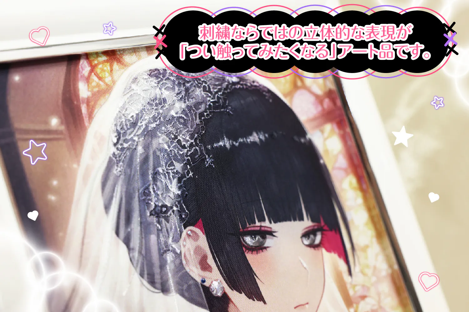 ひよこ店長の花嫁姿が美しい刺繍アートのイラストは、本企画のための描き下ろしデザイン♪