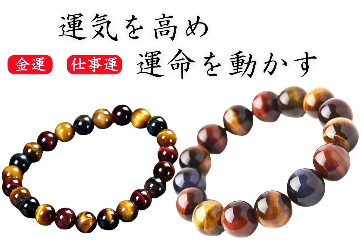 黄・赤・青・褐色の虎目石が放つ輝きが、それぞれの意味(「金運」「情熱」「冷静」「安定」)を一層感じていただけるようになりました。