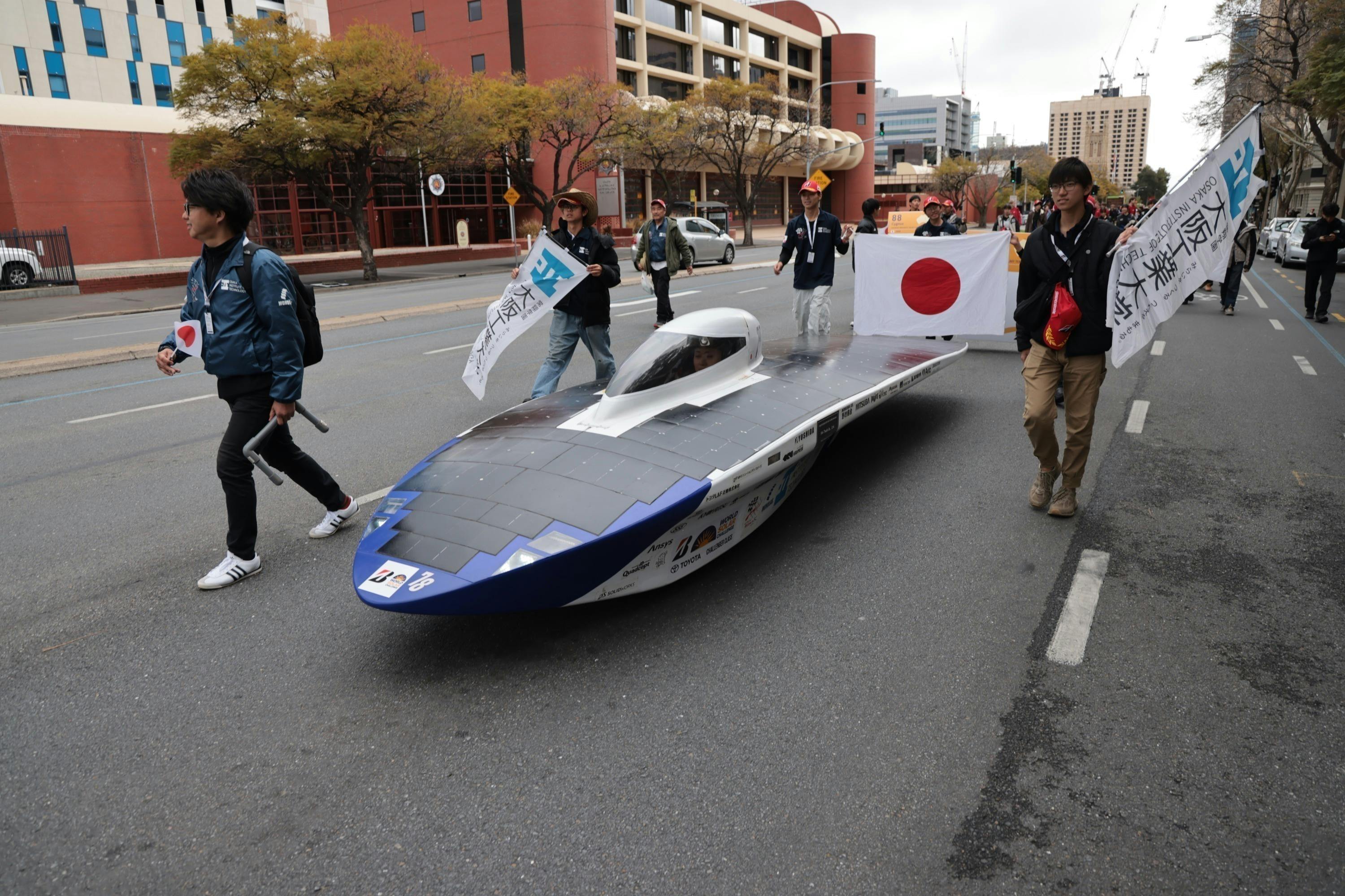 大会では、予選での事故により車体が破損し本戦出場が危ぶまれたものの何とかその日のうちに修理を終わらせ、本戦に出場することができました。大会初日においては、機材トラブルによりスタートが大幅に遅延し、当初の予定よりも他チームに大きく遅れを取ることになりました。しかし、大会2日目~5日目では大きなトラブルもなく順調に走行しゴールのアデレード手前の都市ポートオーガスタまで行くことができました。最終日の6日目では強風と大雨により一時は大会運営から走行中止の指示や、強風によって車体の一部が飛ばされかけるなどのアクシデントがあったもののついにゴールであるアデレードに到着することができ、無事に完走することができました。