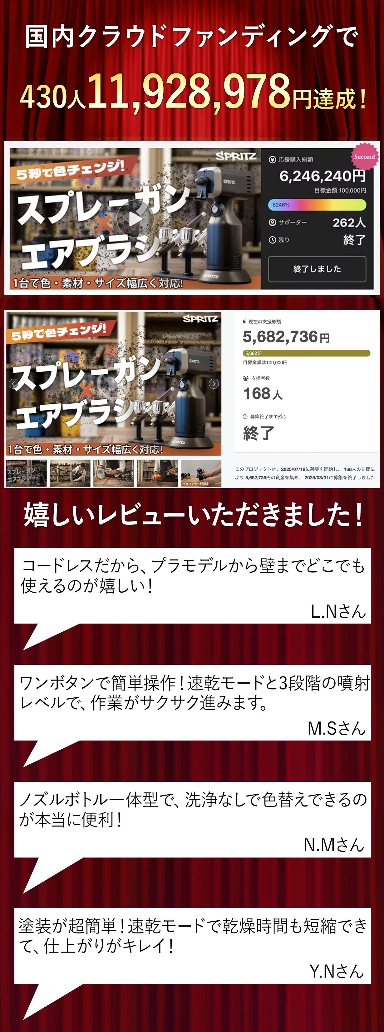 そこで、「もっと簡単でスピーディーに塗装を楽しめたらいいのに!」 という思いから SPRITZ と出会いました。色交換の手間をぐっと減らし、初心者の方でも扱いやすい設計 になっているので、初心者からプロまで使いこなせる逸品です!