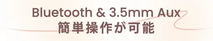 Bluetooth(最大10mの通信距離)又は3.5mm Aux入力のみによる再生ができます。スピーカーが内蔵されていないため、オーディオを再生することができず、音楽を体験するには外部スピーカーシステムが必要です。