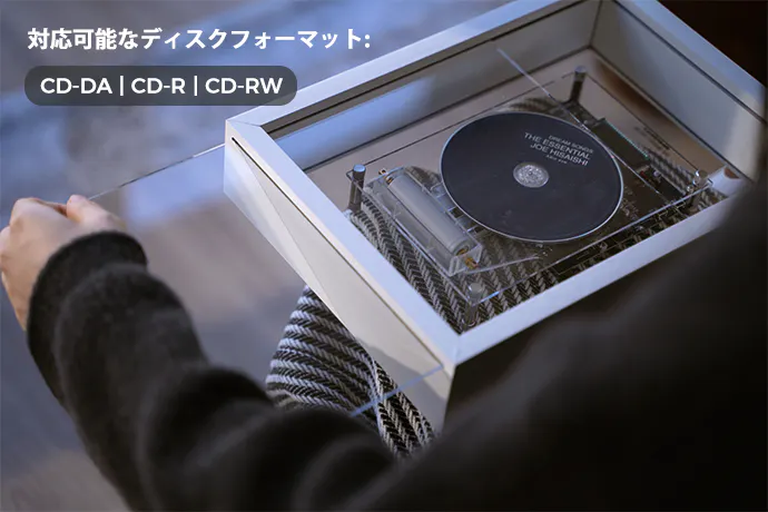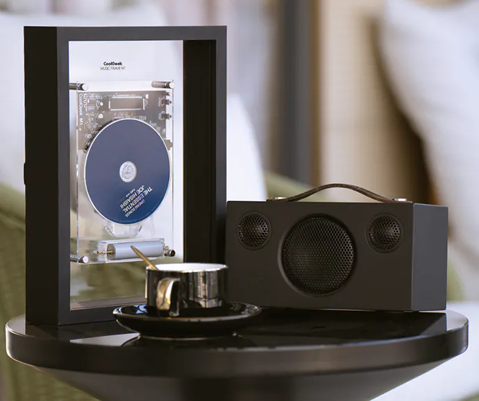 CDプレーヤー「CoolGeek M1」は、壁に取り付けて空間に深さと質感を加えたり、テーブルに置いたりして、スペースをあまり取らずに飾るアート作品としてご利用いただけます。