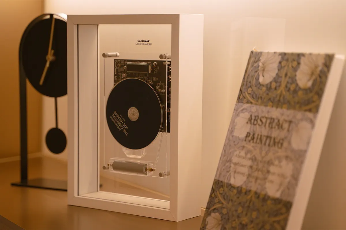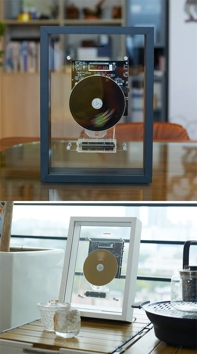 ポータブルCDプレーヤー「CoolGeek M1」は、アートフレームの芸術性とCDプレーヤーの機能を組み合わせることで革新的なデザインを生み出しています。フレームを容器として、音楽と家庭の美学を調和させ、CDプレーヤーであるだけでなく、日常生活の雰囲気を豊かにし、芸術的な装飾品でもあります。