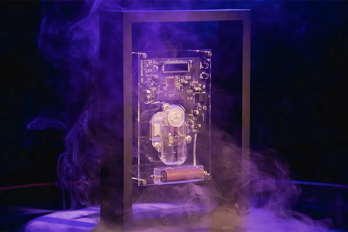 CDプレーヤー「CoolGeek M1」は、ミニマルな幾何学のラインで定義され、透明度の高いアクリルで作られており、軽やかにすっきりとした美学を生み出しています。回転するCDは時間の軌跡のようなもので、複雑な電子パネルは、現代の産業と芸術の間の詩的な対話がその中にさりげなく隠されているように感じられます。