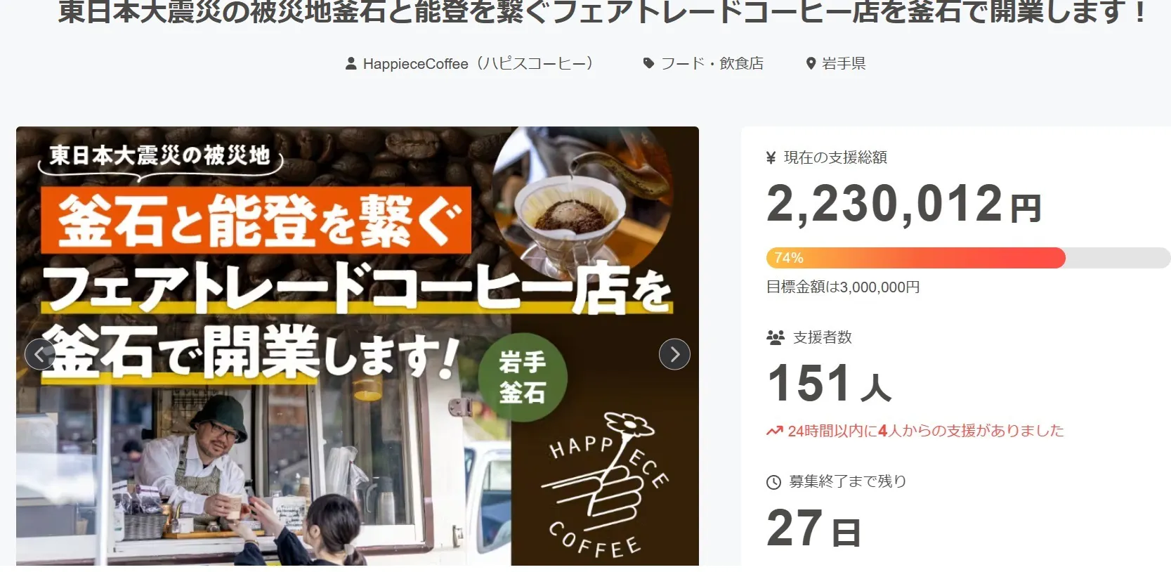 セカンドゴールはキッチンカーハピス号メンテナンス費用の応援を依頼したいと考えております。