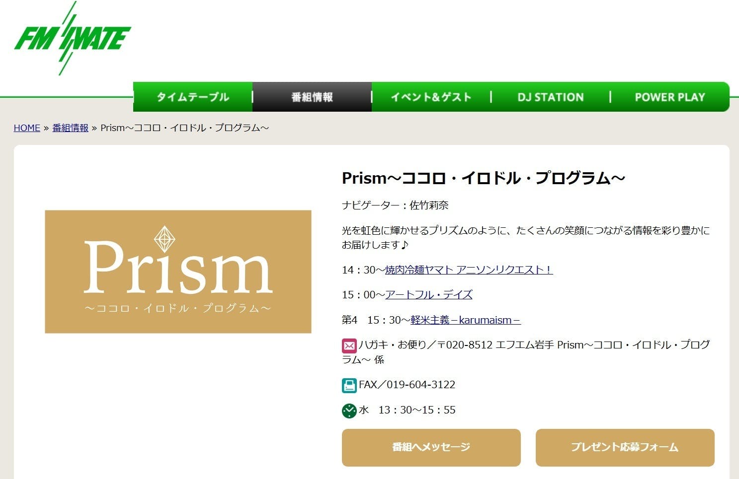 番組名:FM岩手「Prism」