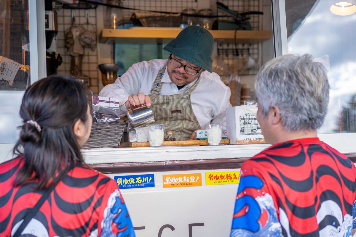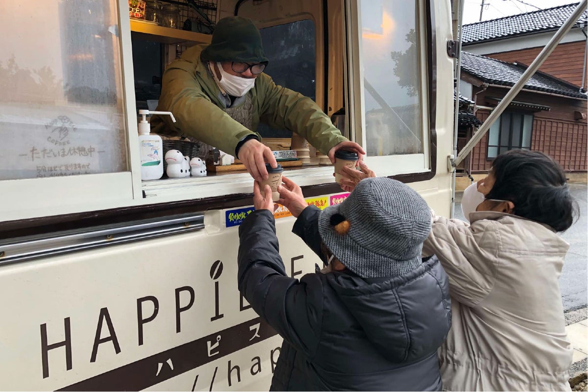 ほぼ毎月、能登に通ううちにハピスのコーヒーを心待ちにしてくれる馴染みのお客さんもできました。走っているハピス号を見かけて、遠くから手を振ってくれるおじいちゃん、おばあちゃんもいます。能登の人たちを元気づけたいと思って能登に行き始めましたが、逆に僕の方が能登のみんなから元気をもらっています。