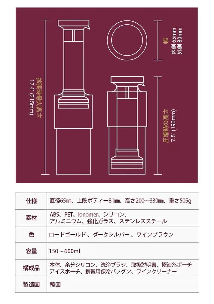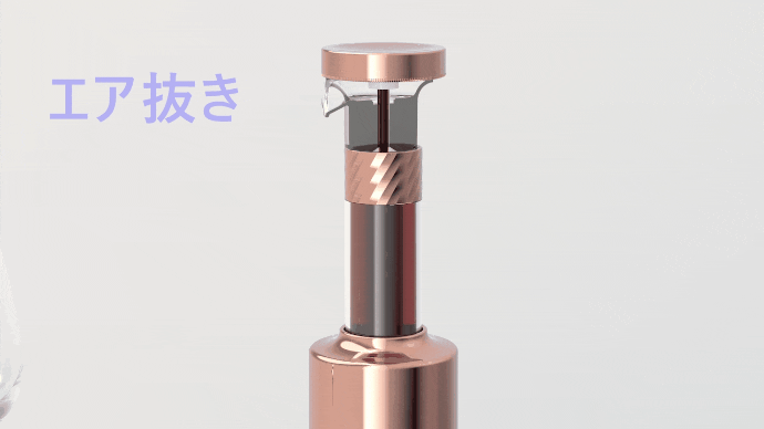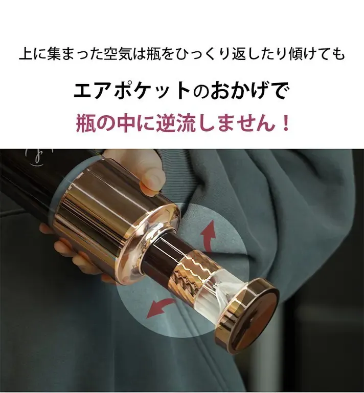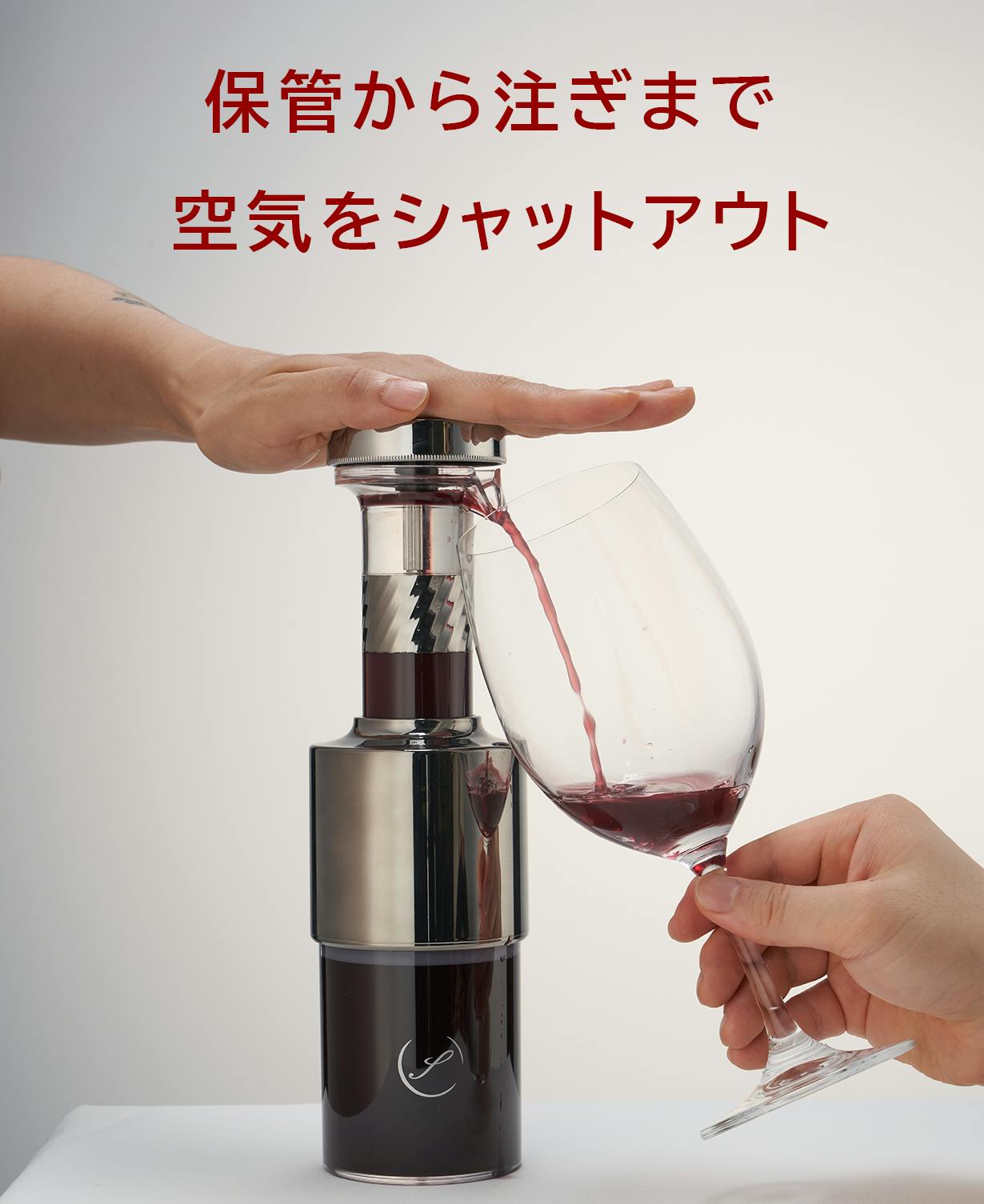 通常のボトルやカラフェと同じように注ぐことができますが、ボトル内に残ったワインは空気に触れず、新鮮な状態を保つことができます。