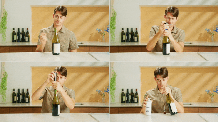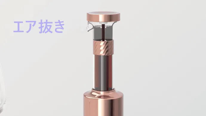 ワインボトルに残ったワインをZoenoxに移し、空気を抜くために押し下げてください。