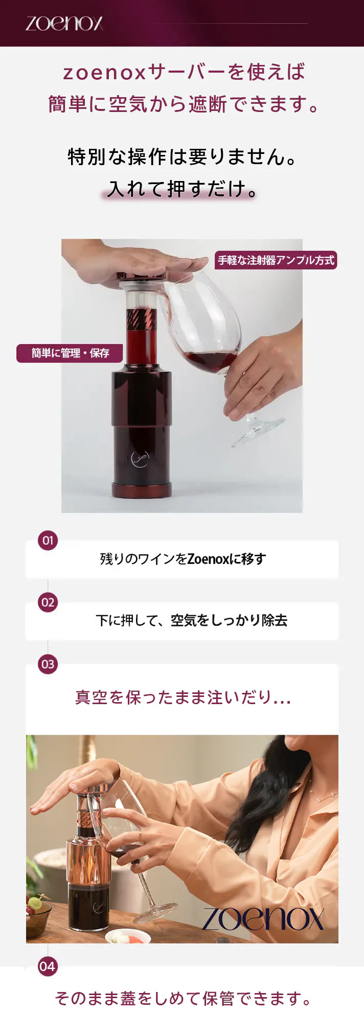 Zoenoxは、よりスマートで簡単なワイン保存ツールです。