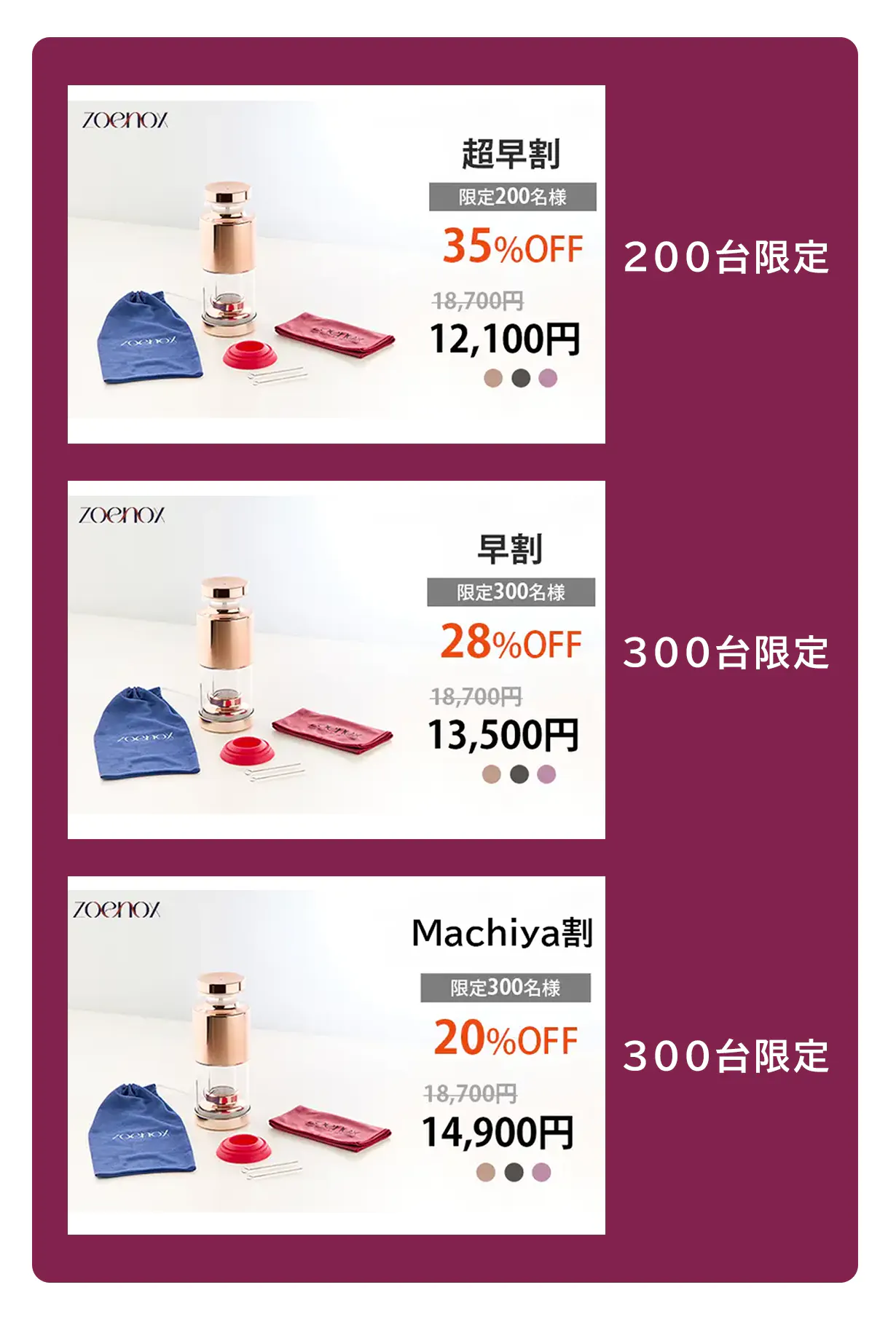 ※想定を上回る皆様からご支援を頂き、量産体制を更に充実させることができた場合、販売価格が予定価格を下回る可能性がございます。