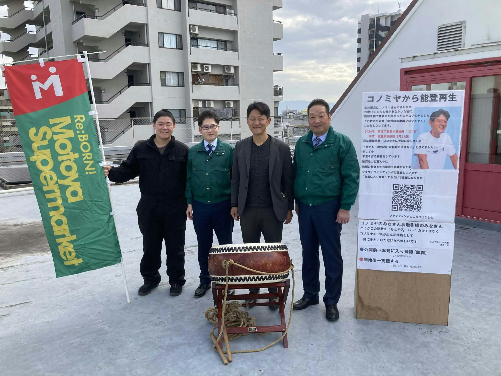 コノミヤは、2024年元日の能登の震災のあと、能登を支援する取り組みとして、現地に水を送ってくれていました。そのお礼を言おうと、2025年1月に訪問していました。その頃、もとやスーパーのことを何度かテレビ番組が紹介してくださっていましたが、この訪問時に「テレビ観たぞ。できることがあったら言ってくれ」というふうに言ってくださっていたんです。