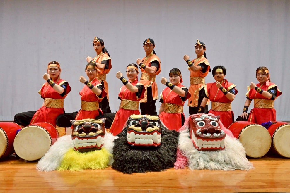 私たちは、創作エイサーと獅子舞を軸とし、沖縄に伝わる芸能に新たなスタイルを取り入れながら舞台づくりを行っています。伝統芸能の継承に貢献したいという想いから、沖縄国際大学のサークルとして2002年に結成し、今年度で23年目を迎えました。