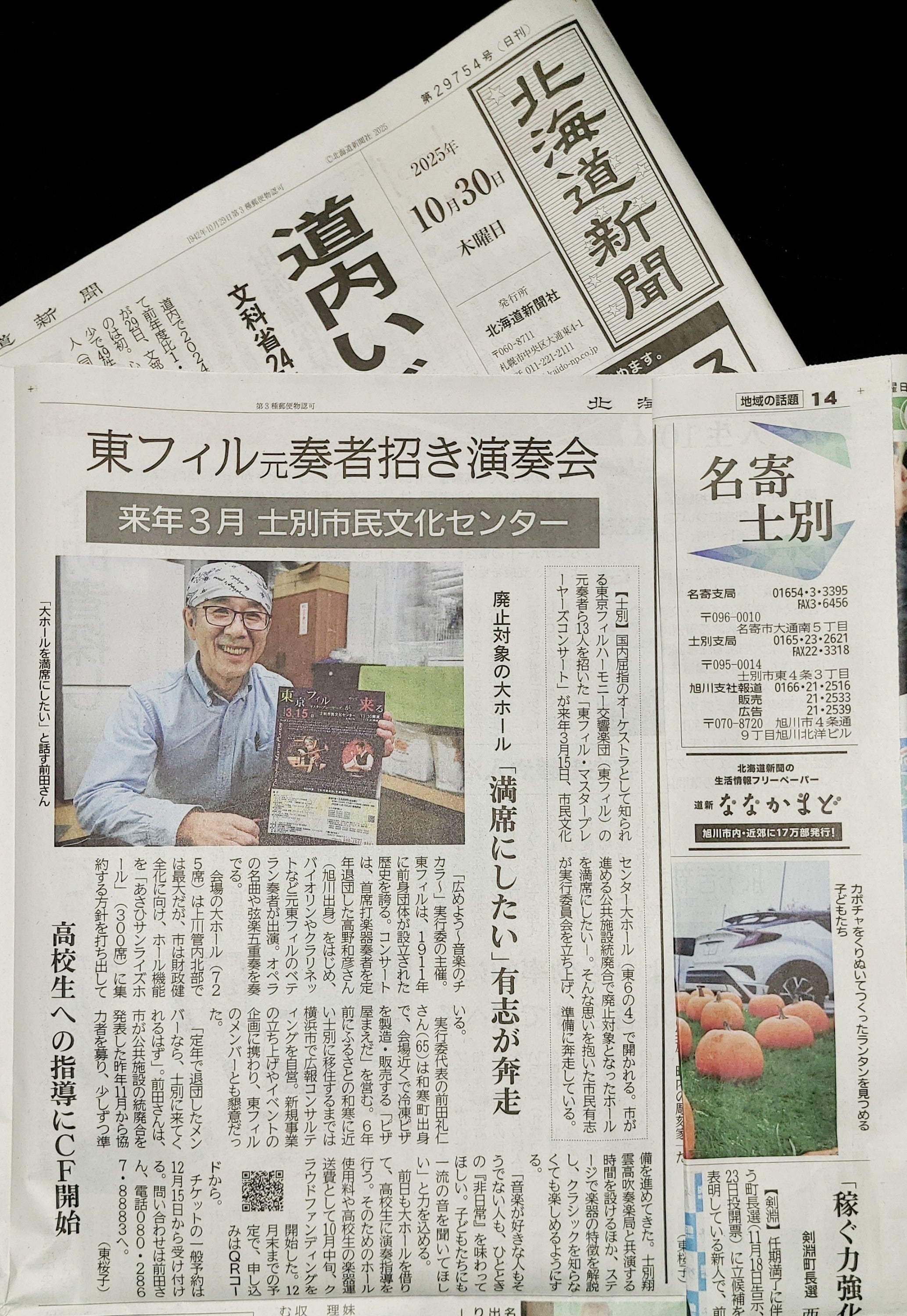 2026/03/16 18:46「東京フィル・マスタープレーヤーズ」北海道士別市公演、昨日無事に終了いたしました。さすがに難しいかな?と思っていた「満席!」も達成。未だに(この田舎町が)ざわついています。涙するお客様もたくさん、飛び跳ねる子供たちも、ブラボー!も、スタンディングオベーションもいただきました。共演高校の生徒たちにも、良き経験/佳き思い出になったことは間違いありません。お約束の「映像配信」については、8カメラで撮影しましたので、編集完了まで少々お時間をいたきます。まずは無事に開催できましたことをお知らせし、心より御礼申し上げます。 もっと見るご報告、遅くなり申し訳ありません。