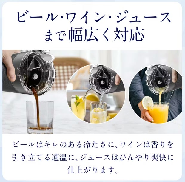 また、Ice Quick Cupはコーヒー以外の飲み物にも幅広く対応しています。紅茶やジュース、ワインなど、さまざまなドリンクを冷やすことができ、自宅でのリラックスタイムはもちろん、友人との集まりやちょっとしたおもてなしのシーンでも活躍します。ひとつ持っておくだけで、日常のドリンクの楽しみ方が大きく広がる、多機能なアイテムです。