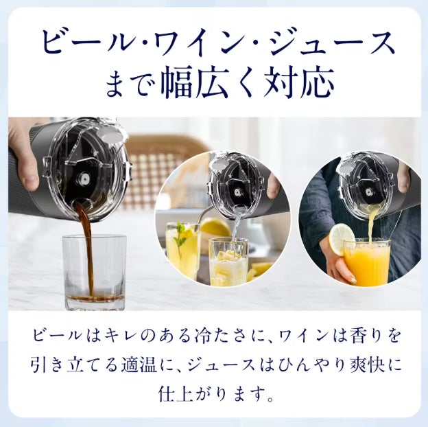 アイスクイックカップの魅力は、アイスコーヒーだけにとどまりません。ワインやスピリッツ、紅茶、ジュースなど、さまざまな飲み物に対応しており、「今すぐ冷たい一杯を楽しみたい」というシーンで大活躍します。氷を使わないため、どんな飲み物でも味や香りが薄まることなく、素材本来の美味しさを引き出します。急な来客時や、リラックスタイムのお供としても使いやすく、日常のドリンク体験をワンランク上へと引き上げてくれます。