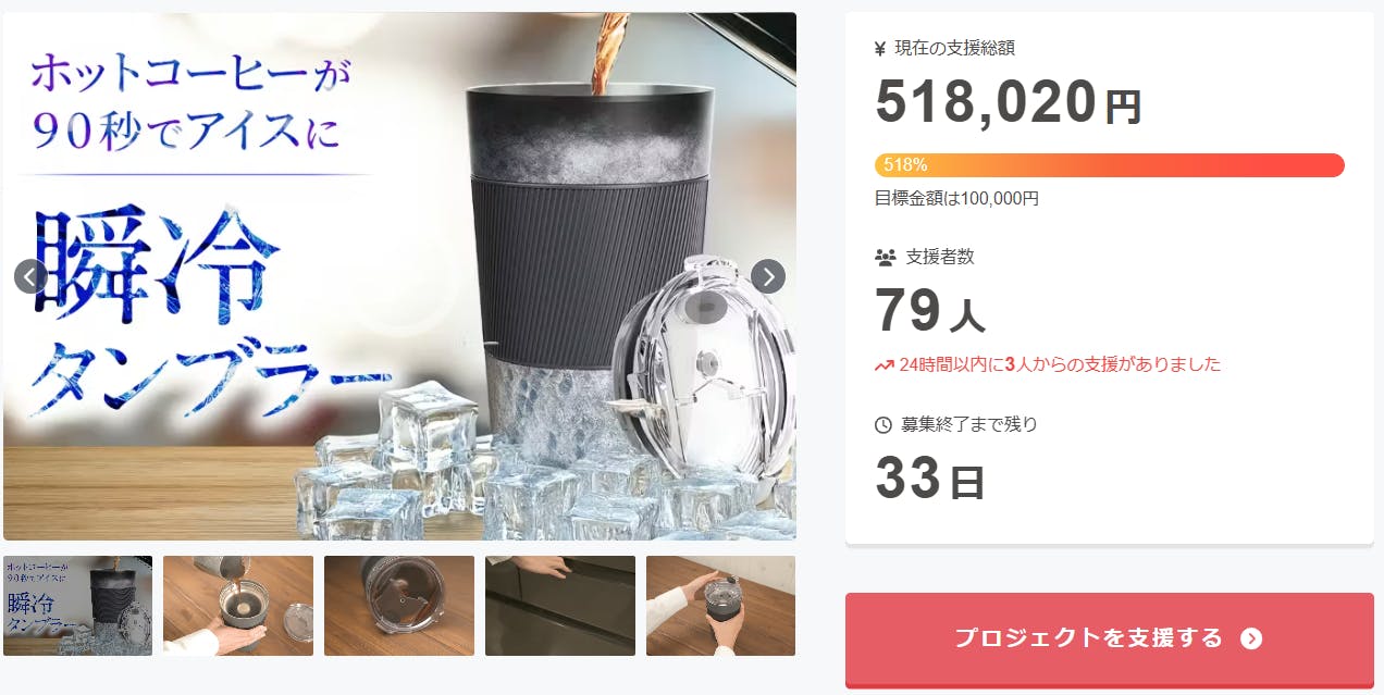 2026/02/10 12:00この度は「薄まらない美味しさが続く。90秒で香りとコクを引き出す瞬冷プレミアムタンブラー」に支援頂き、ありがとうございます!お陰様で、支援総額50万円達成することができました。そんな現代人のニーズに応える革新的なタンブラーが Ice Quick Cup です。ホットドリンクを注ぐだけで、わずか90秒後にはキンキンに冷えたアイスコーヒーが完成。氷も冷蔵庫も必要なく、飲みたい瞬間に冷たい一杯を楽しめる、新しいコーヒー体験を提供します。ご興味のある方、ぜひ支援お願い致します。https://camp-fire.jp/projects/888676/viewBrightチームは、当プロジェクトをもっと多くの方に知っていただきたいと考えております。よかったら、FacebookやTwitter等のSNSでのシェア・拡散をお願い致します。#brightdiyどうぞよろしくお願い致します。Brightチーム もっと見る