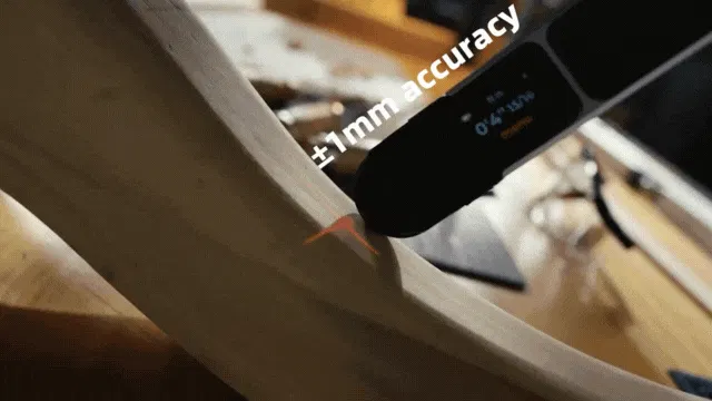A. 理想的な環境下での精度は ±1mm。直線はもちろん、曲線や不規則な形状まで正確に測定できます。