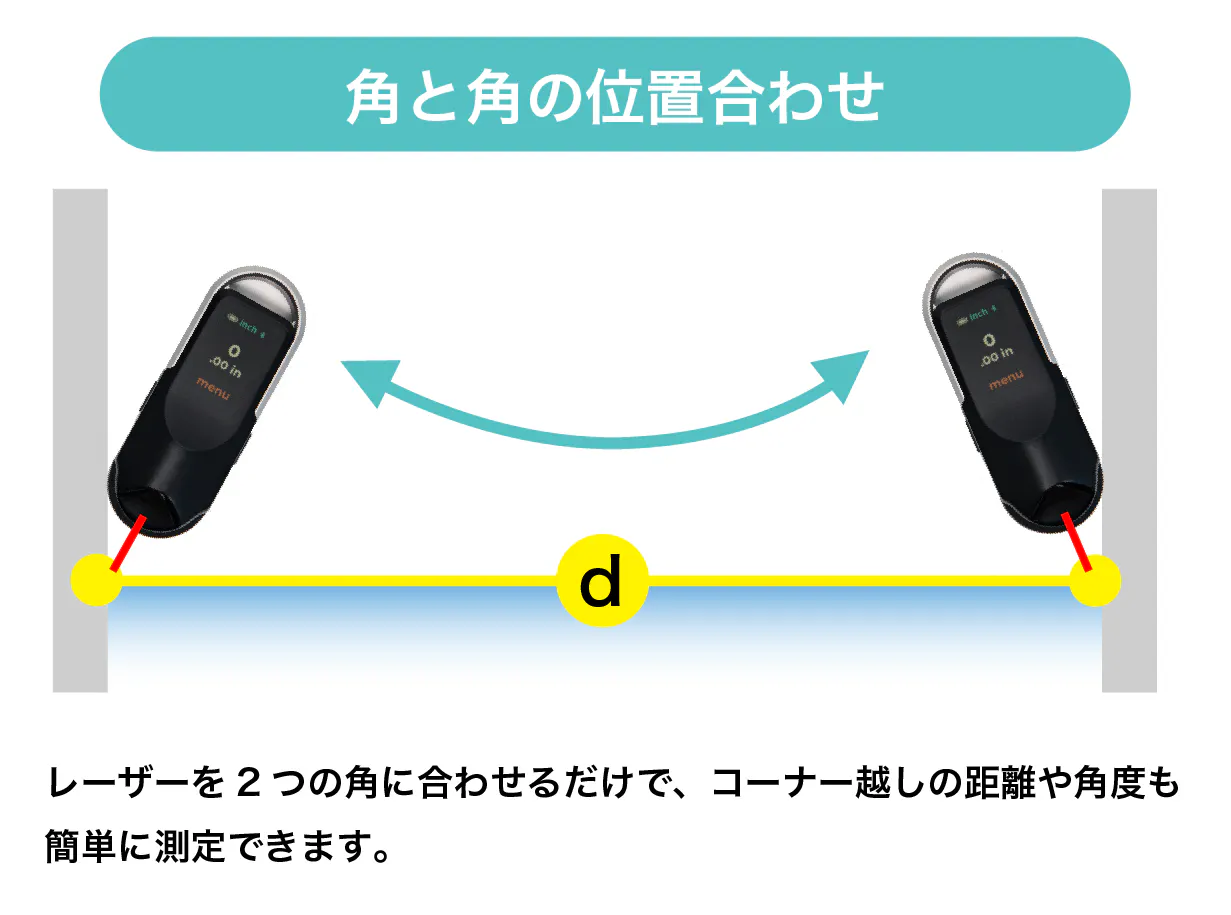 コーナー越しの長さもスムーズかつ正確に測ることができます。